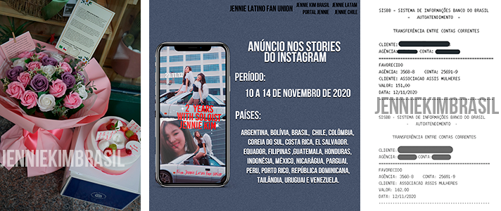 Nosso segundo projeto realizado, e o primeiro internacional, foi em parceria com outras fanbases latino-americanas da Jennie e para comemorar o 2º aniversário de SOLO. Ao longo de 2 meses nós arrecadamos um total de R$ 1.110,00 que foram usados para comprar e enviar um buquê de flores e um bolo para a Jennie, em anúncios do Instagram e doação para a Associação RECOMEÇAR, uma organização que abriga e ajuda mulheres vítimas de violência doméstica e seus filhos.
